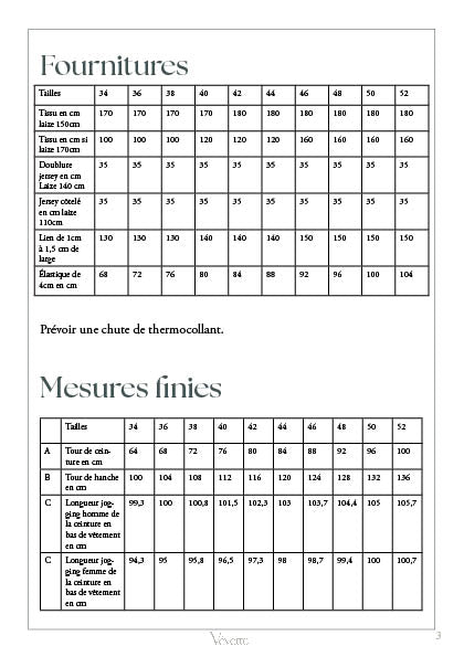 Les marges de couture sont incluses et ont été étudiées pour un assemblage à la surjeteuse en 4 fils.